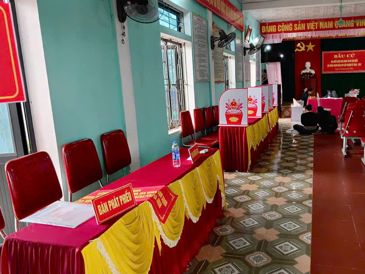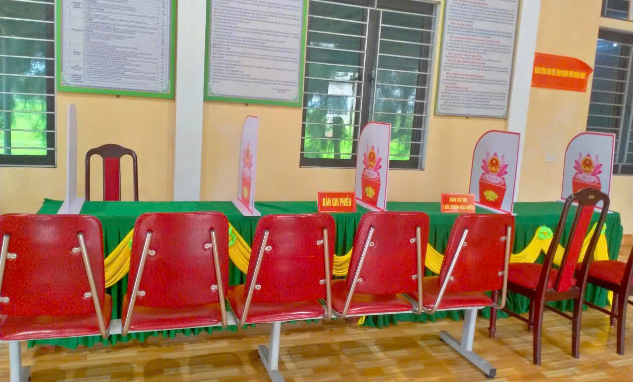 Toàn xã có 23 khu vực bỏ phiếu tại 23 thônthuộc 5 đơn vị bầu cử. Đến nay, xã đã hoàn thành việc lập và niêm yết danh sách 15.983 cử tri tại các khu vực bỏ phiếu theo đúng quy định. Để bảo đảm các điều kiện phục vụ bầu cử, việc trang trí cờ hoa, khánh tiết tại các điểm bỏ phiếu được chỉ đạo triển khai đồng bộ; hòm phiếu chính, hòm phiếu phụ, bàn ghế, tài liệu phục vụ bầu cử được chuẩn bị đầy đủ, bố trí khoa học, tạo thuận lợi cho cử tri khi tham gia bỏ phiếu.