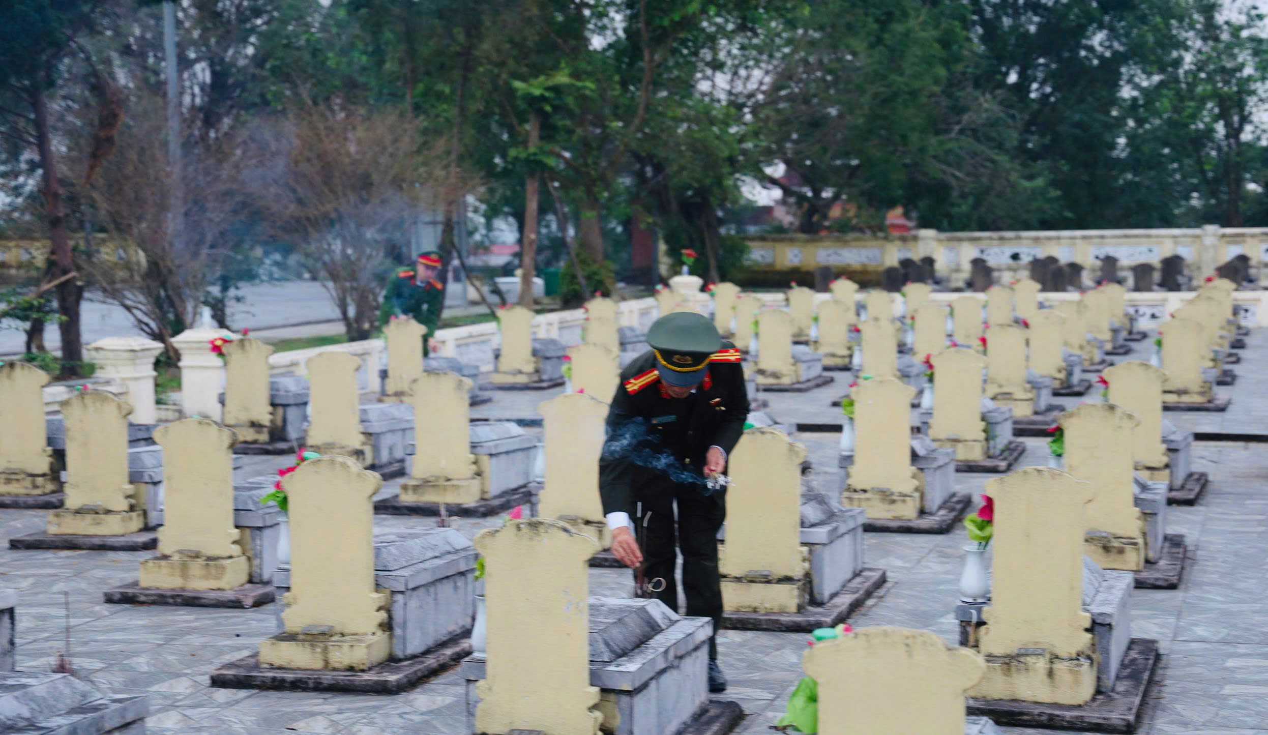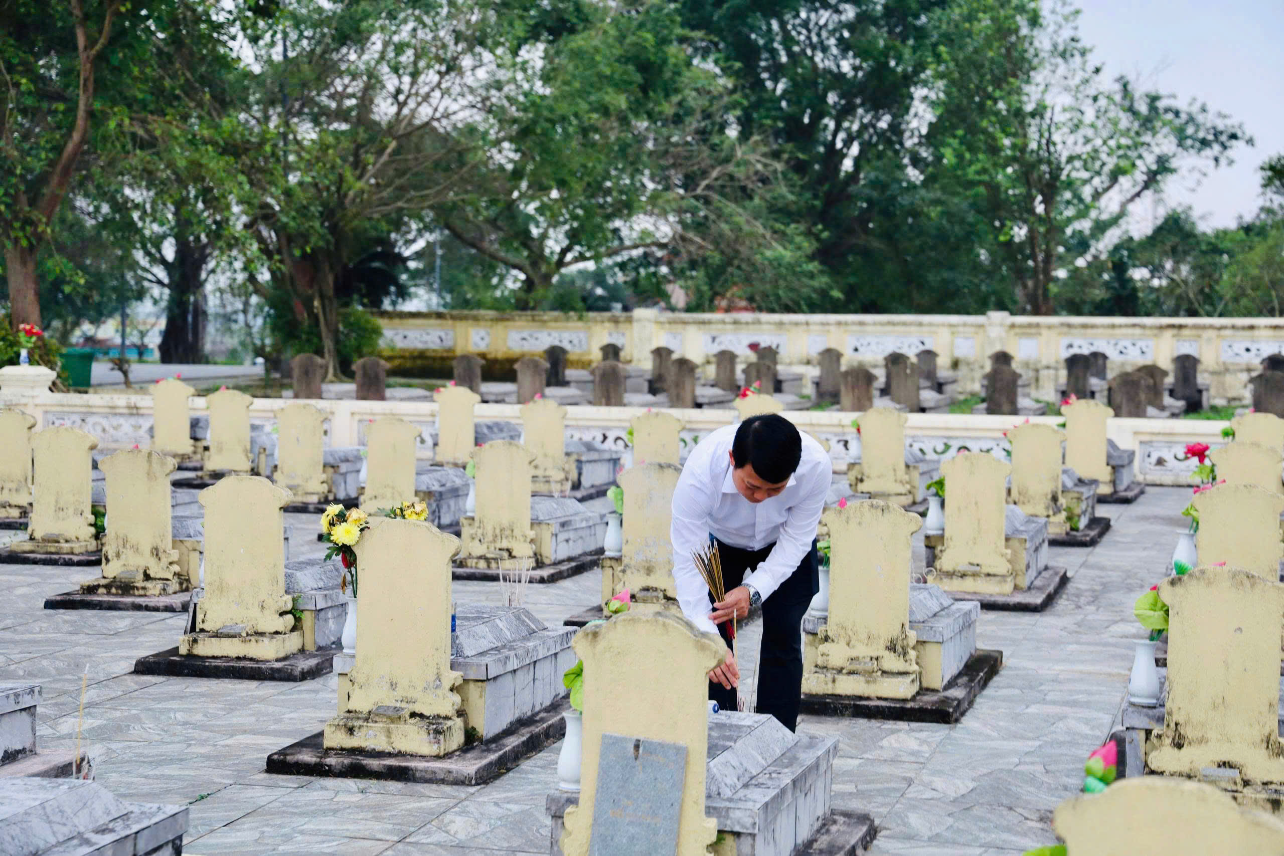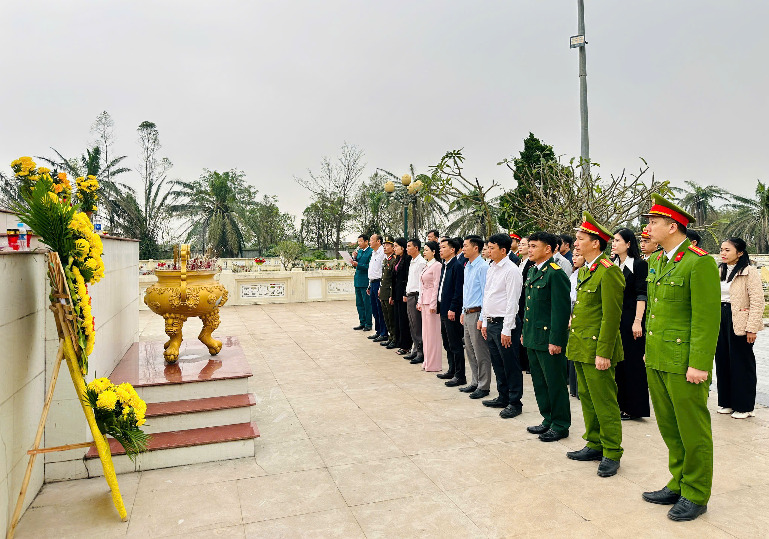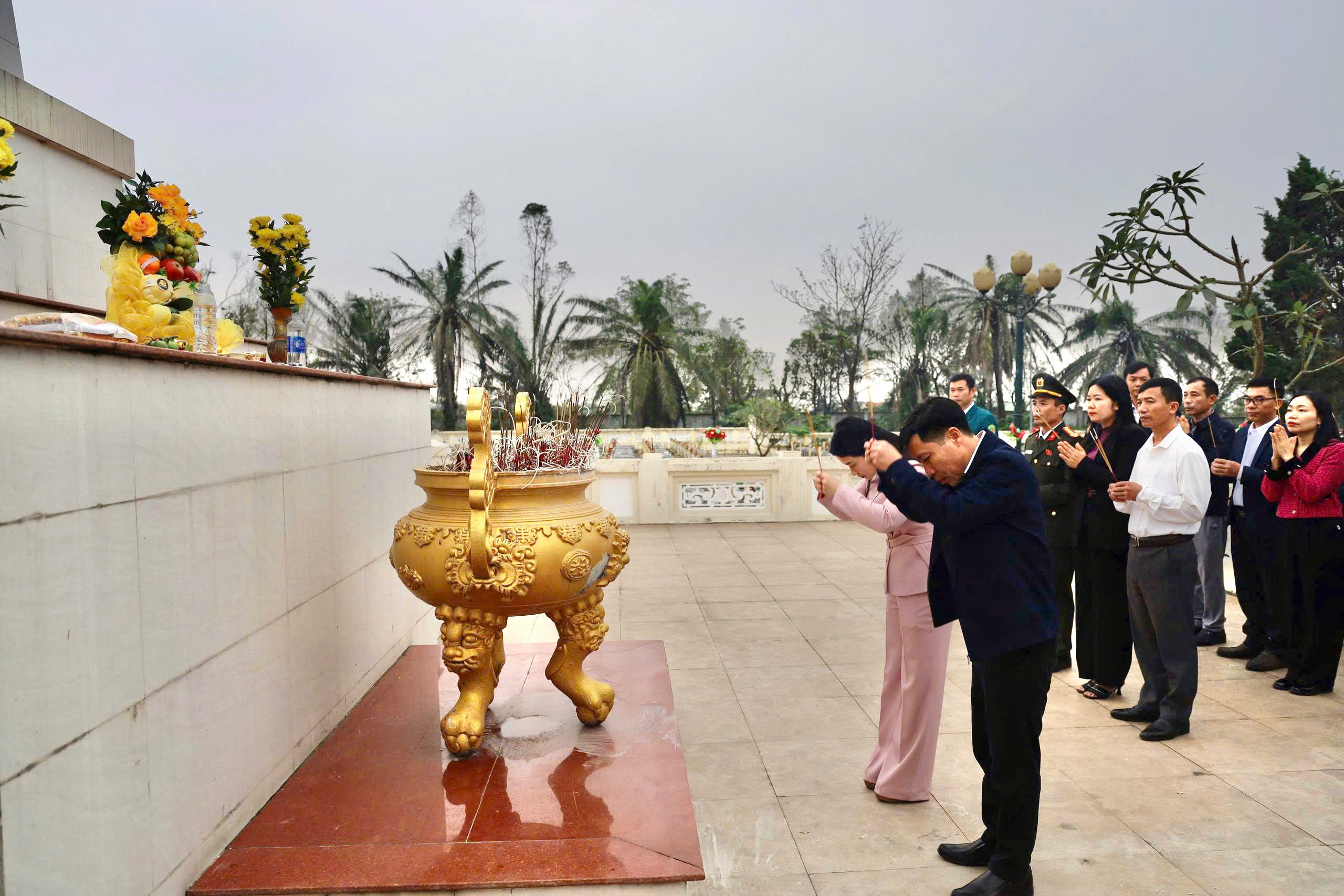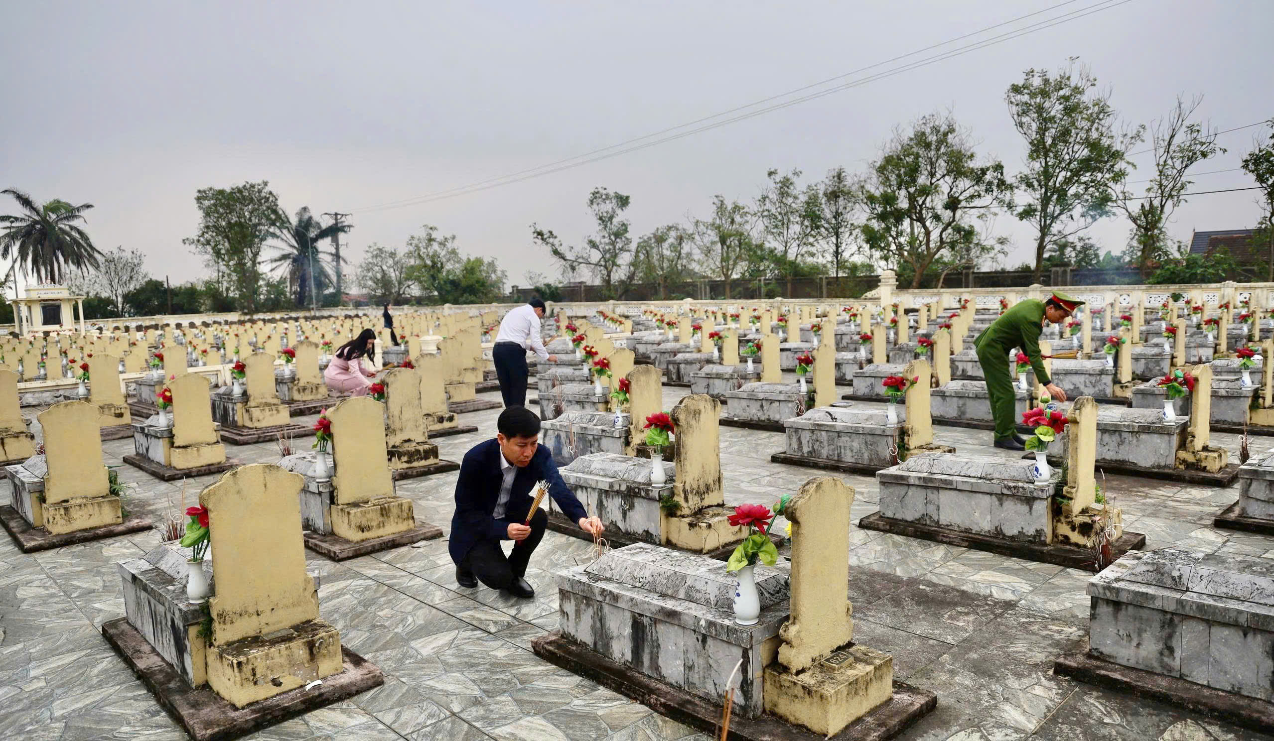Sau lễ dâng hương, dâng hoa, các đồng chí lãnh đạo xã đã thắp hương trên các phần mộ, tỏ lòng thành kính và biết ơn sâu sắc các Anh hùng liệt sỹ, những người con thân yêu của quê hương đã anh dũng hi sinh vì sự nghiệp đấu tranh giải phóng dân tộc, xây dựng và bảo vệ Tổ quốc để đất nước, quê hương được ấm no, hạnh phúc như ngày hôm nay