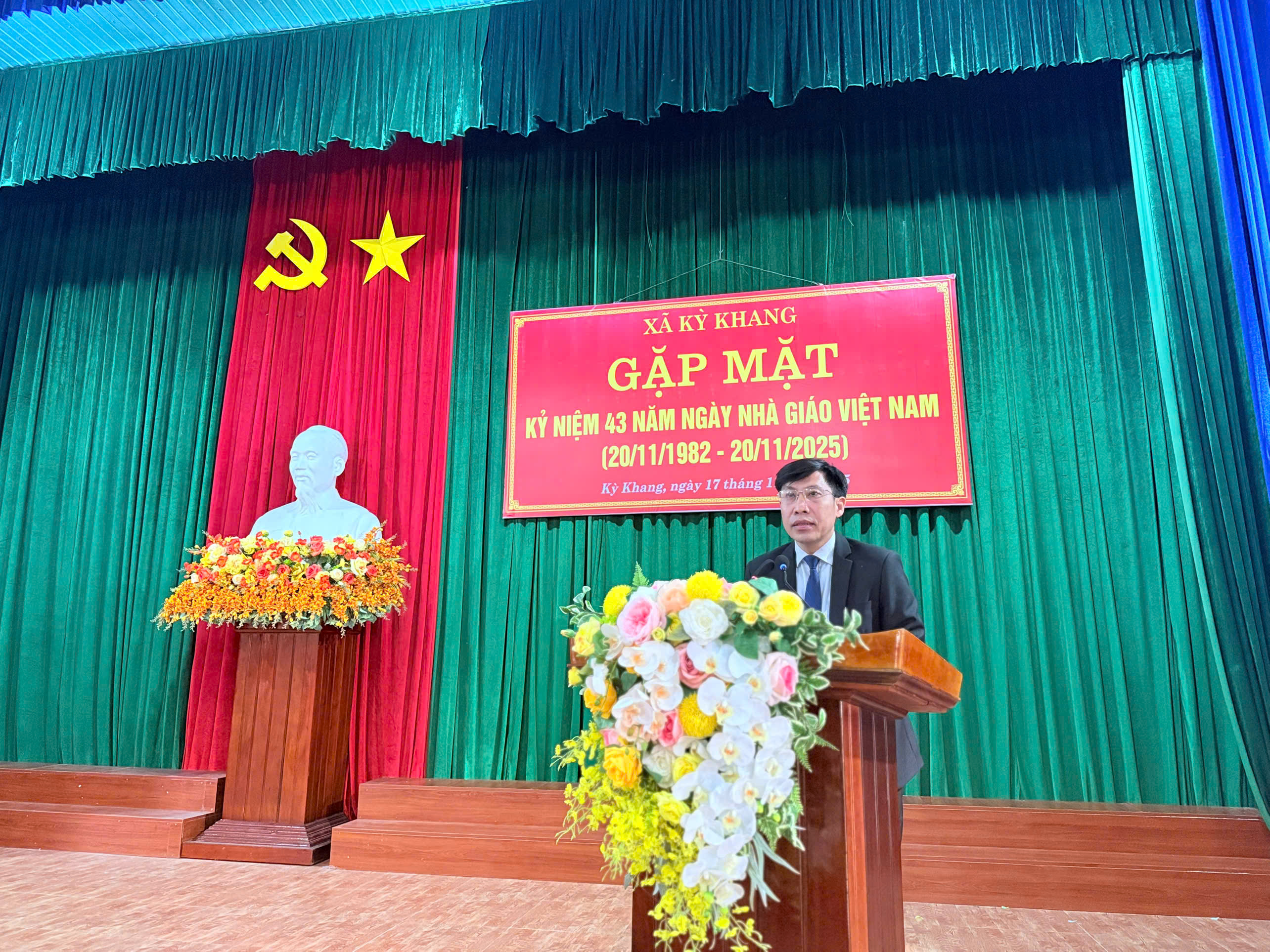 Buổi gặp mặt diễn ra trong không khí ấm áp, nghĩa tình, là dịp để ôn lại truyền thống tốt đẹp của ngành giáo dục, đồng thời gửi lời cảm ơn sâu sắc đến đội ngũ nhà giáo đã dành trọn tâm huyết cho sự nghiệp giáo dục, góp phần nâng cao chất lượng dạy và học tại xã Kỳ Khang trong suốt những năm qua. Đây cũng là dịp để địa phương tiếp tục khẳng định sự quan tâm, đồng hành đối với công tác giáo dục và đào tạo, tạo động lực để các thầy cô tiếp tục nỗ lực hoàn thành tốt nhiệm vụ trong thời gian tới.